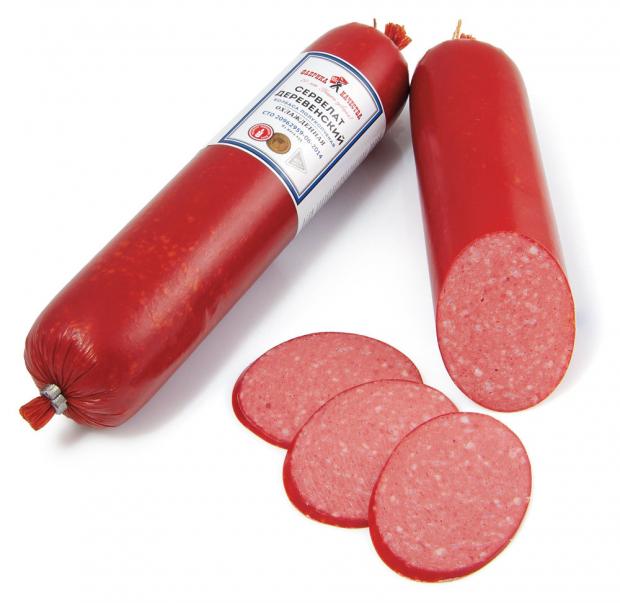 Колбаса полукопченая Сервелат Деревенский с доставкой на дом по Санкт-Петербкргу и области.